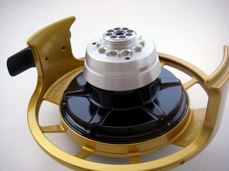 Тормозные диски изготавливаются из углекомпозита. Углекомпозит дает практически нулевой коэффициент теплового расширения, непревзойденную износоустойчивость, низкий коэффициент трения, плавное и равномерное тормозное усилие и успешно противостоит сильному загрязнению. Уникальная система охлаждения шпули при максимальных оборотах прокачивает через элементы катушки более 2,83 куб. м воздуха в минуту. На некоторых катушках используется разные размеры и конфигурации шпуль для одного типоразмера рамы. В результате можно установить шпулю под нужный класс шнура, без добавления лишнего бэкинга. Который увеличивает вес катушки, особенно влажный. При этом отпадает надобность иметь в наличии несколько катушек под разные типы снастей. Технологический процесс включает лазерную порезку и градировку элементов механизма катушки.